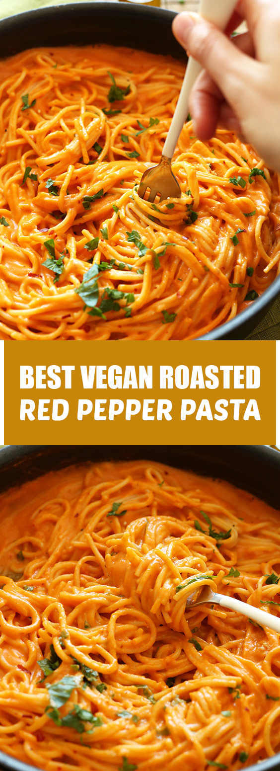 10-ingredient roasted red pepper pasta with a creamy, savory-sweet red pepper sauce and fresh parsley. Light, healthy, and simple, yet incredibly satisfying.